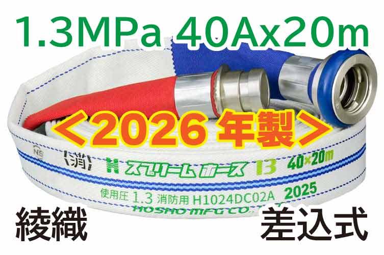 こちらは2026年製スプリームホースご予約用注文です。納期確定次第 ( 2025年12月中旬以降 ) 随時出荷予定日をメールてお伝えさせていただきます。通常は「二重巻」となります。変更時は別途作業代/作業納期が必要となります。詳しくは弊社営業へお問合せください。 ★2026年製予約★スプリームホース 1.3MPa 40x20 綾織 AL町野式 【商品コード】00314703 【JAN】 ★2026年製予約★スプリームホース 1.3MPa 40x20 綾織 AL町野式 消防器具 ホース スプリーム 数量 (本): 0 税率:10%(課税) カートに入れる 商品説明 備考 主材料 A5056ポリエステル 圧力 1.3 サイズ 40A 重量 図面 仕様書・諸元表・性能表 認定証書 取扱説明書
