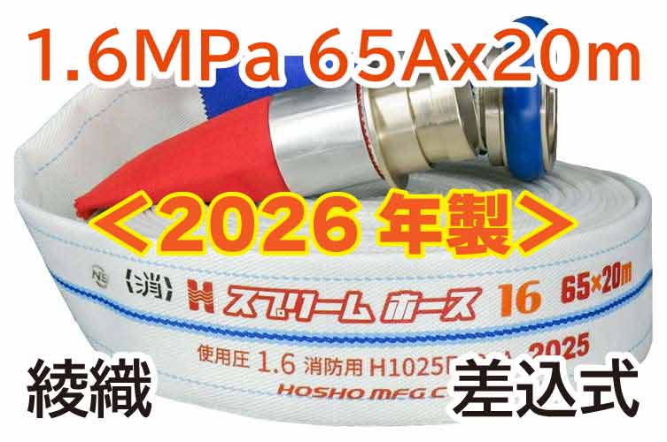 こちらは2026年製スプリームホースご予約用注文です。納期確定次第 ( 2025年12月中旬以降 ) 随時出荷予定日をメールてお伝えさせていただきます。通常は「二重巻」となります。変更時は別途作業代/作業納期が必要となります。詳しくは弊社営業へお問合せください。 ★2026年製予約★スプリームホースEx 1.6MPa 65x20 綾織 AL町野式 【商品コード】00314711 【JAN】 ★2026年製予約★スプリームホースEx 1.6MPa 65x20 綾織 AL町野式 消防器具 ホース スプリーム 数量 (本): 0 税率:10%(課税) カートに入れる 商品説明 備考 主材料 A5056ポリエステル 圧力 1.6 サイズ 65A 重量 図面 仕様書・諸元表・性能表 認定証書 取扱説明書